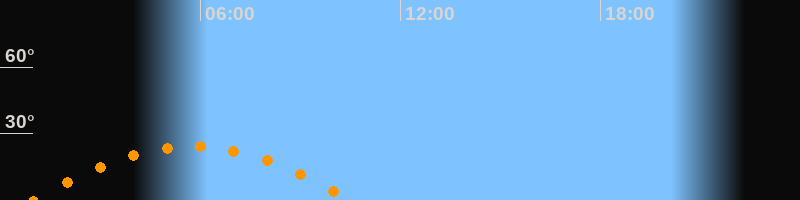 | Höchster Stand (Kulmination) | 05:45 Uhr (h = 24,3°) |