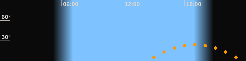 | Aufgang | 14:13 Uhr im Südosten (αAz = 113,4°) |