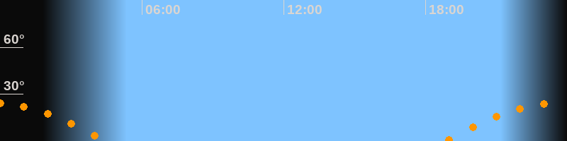 | Untergang | 04:28 Uhr im Südwesten (αAz = 246,6°) |