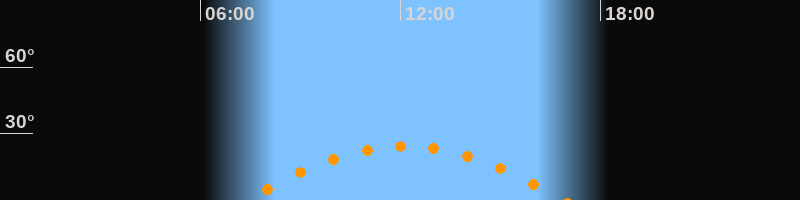 | Höchster Stand (Kulmination) | 12:08 Uhr (h = 24,3°) |