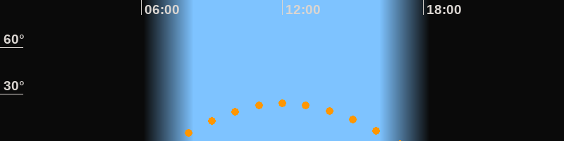 | Höchster Stand (Kulmination) | 12:04 Uhr (h = 24,3°) |