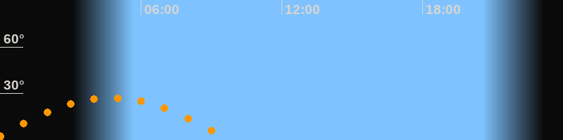 | Untergang | 09:46 Uhr im Westen (αAz = 251,6°) |