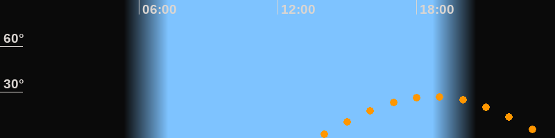 | Höchster Stand (Kulmination) | 18:41 Uhr (h = 27,3°) |