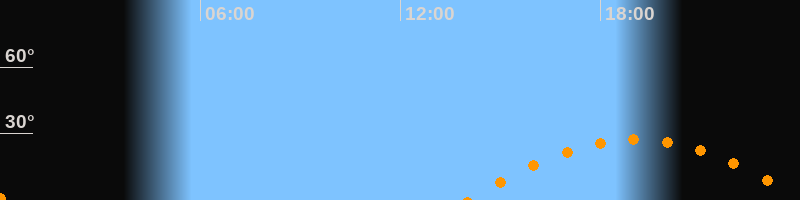 | Höchster Stand (Kulmination) | 19:03 Uhr (h = 27,3°) |