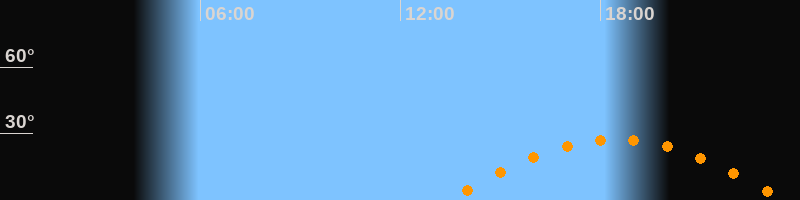 | Aufgang | 13:25 Uhr im Osten (αAz = 108,4°) |