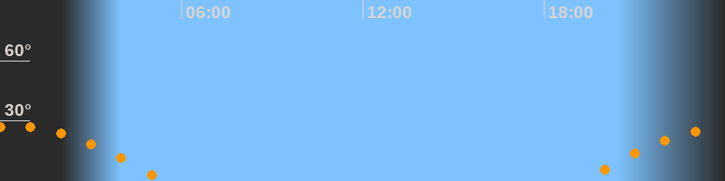 | Aufgang | 19:16 Uhr im Osten (αAz = 108,4°) |