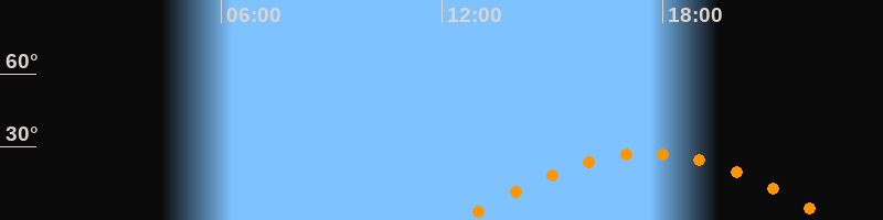 | Höchster Stand (Kulmination) | 17:36 Uhr (h = 27,3°) |