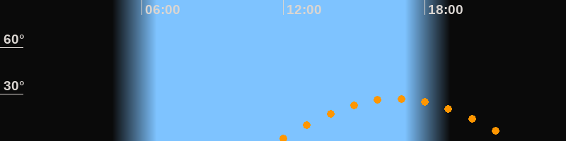 | Höchster Stand (Kulmination) | 16:45 Uhr (h = 27,3°) |