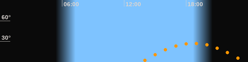 | Höchster Stand (Kulmination) | 18:42 Uhr (h = 27,3°) |