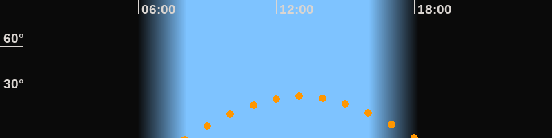 | Höchster Stand (Kulmination) | 13:03 Uhr (h = 27,3°) |
