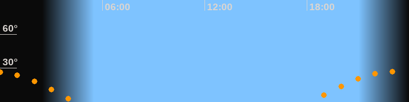 | Aufgang | 18:14 Uhr im Osten (αAz = 108,4°) |