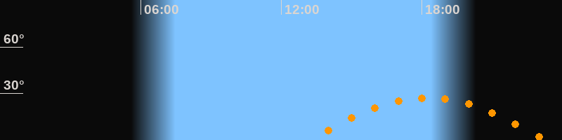 | Höchster Stand (Kulmination) | 18:15 Uhr (h = 27,3°) |