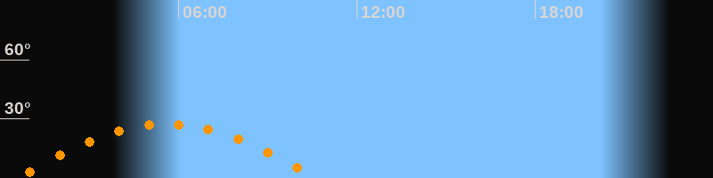 | Höchster Stand (Kulmination) | 05:36 Uhr (h = 27,3°) |