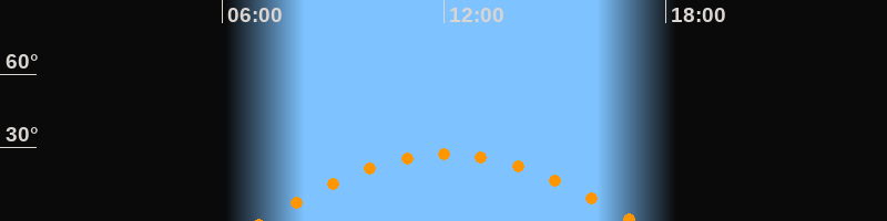 | Höchster Stand (Kulmination) | 12:06 Uhr (h = 27,3°) |