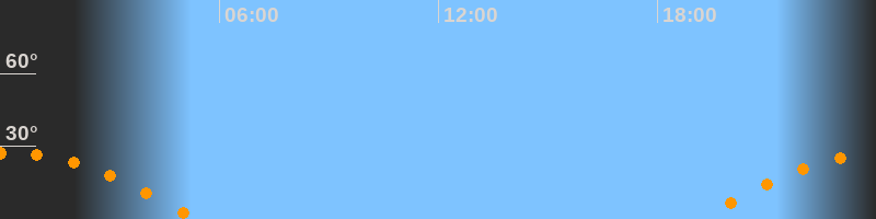 | Aufgang | 19:10 Uhr im Osten (αAz = 108,4°) |