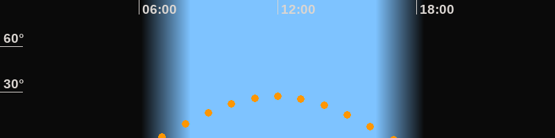 | Höchster Stand (Kulmination) | 11:53 Uhr (h = 27,3°) |