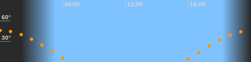 | Aufgang | 17:28 Uhr im Osten (αAz = 78,9°) |
