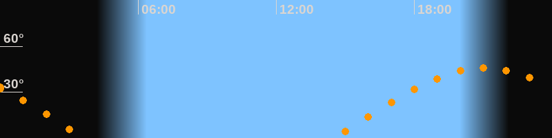 | Aufgang | 14:28 Uhr im Osten (αAz = 78,9°) |