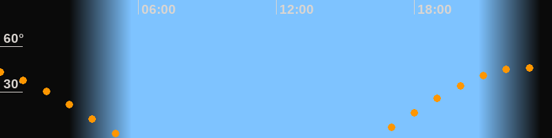 | Aufgang | 16:09 Uhr im Osten (αAz = 78,9°) |