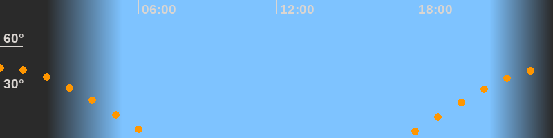 | Aufgang | 17:27 Uhr im Osten (αAz = 78,9°) |