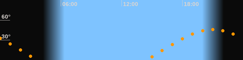 | Aufgang | 14:25 Uhr im Osten (αAz = 78,9°) |