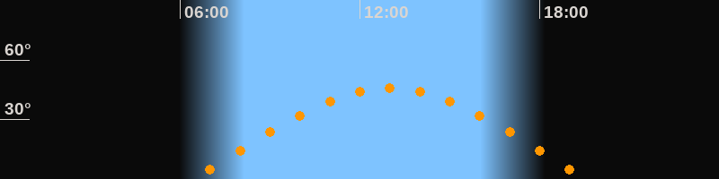 | Höchster Stand (Kulmination) | 13:00 Uhr (h = 45,8°) |