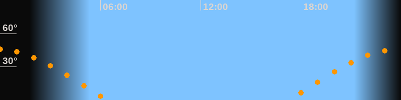 | Aufgang | 17:12 Uhr im Osten (αAz = 78,9°) |