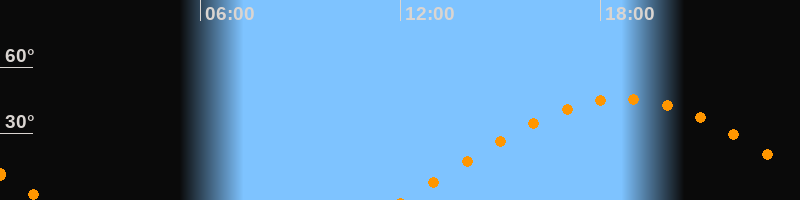 | Aufgang | 12:06 Uhr im Osten (αAz = 78,9°) |