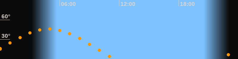 | Untergang | 11:28 Uhr im Westen (αAz = 281,1°) |