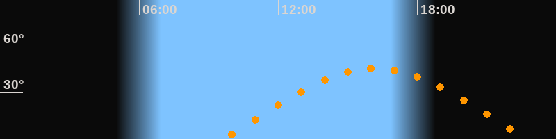 | Höchster Stand (Kulmination) | 16:10 Uhr (h = 45,8°) |