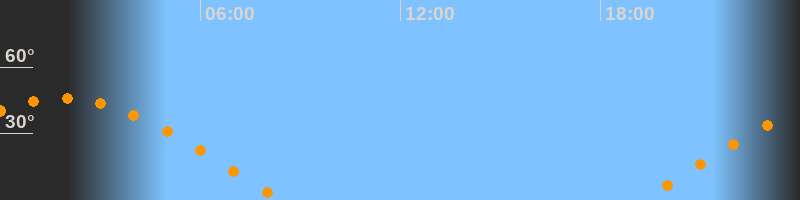 | Aufgang | 19:13 Uhr im Osten (αAz = 78,9°) |