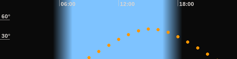 | Aufgang | 08:41 Uhr im Osten (αAz = 78,9°) |