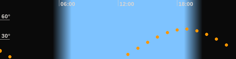 | Aufgang | 12:11 Uhr im Osten (αAz = 78,9°) |