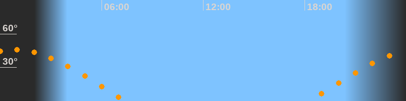 | Aufgang | 18:13 Uhr im Osten (αAz = 78,9°) |
