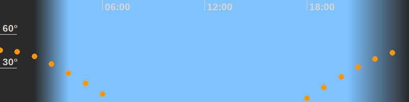| Untergang | 06:47 Uhr im Westen (αAz = 281,1°) |