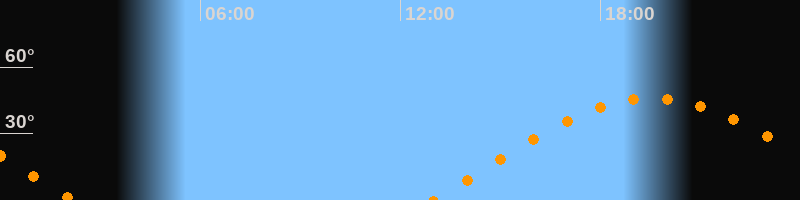 | Aufgang | 12:58 Uhr im Osten (αAz = 78,9°) |