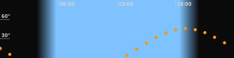 | Aufgang | 12:27 Uhr im Osten (αAz = 78,9°) |