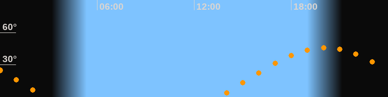 | Aufgang | 13:31 Uhr im Osten (αAz = 78,9°) |