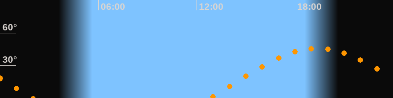 | Aufgang | 12:48 Uhr im Osten (αAz = 78,9°) |