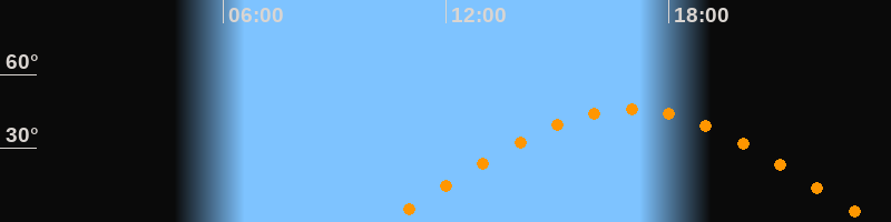 | Aufgang | 10:22 Uhr im Osten (αAz = 78,9°) |