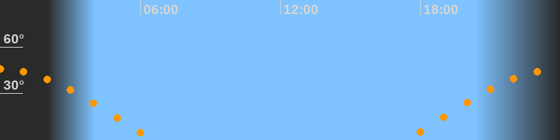 | Untergang | 06:35 Uhr im Westen (αAz = 281,1°) |