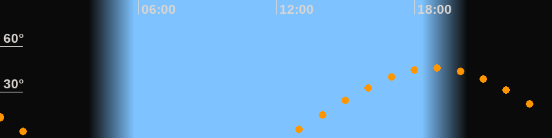 | Aufgang | 12:18 Uhr im Osten (αAz = 78,9°) |