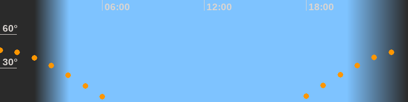 | Untergang | 06:36 Uhr im Westen (αAz = 281,1°) |
