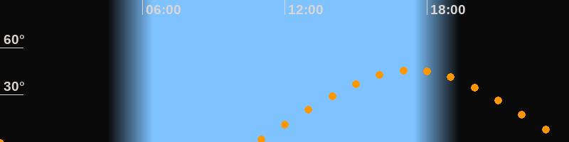 | Aufgang | 10:46 Uhr im Osten (αAz = 78,9°) |