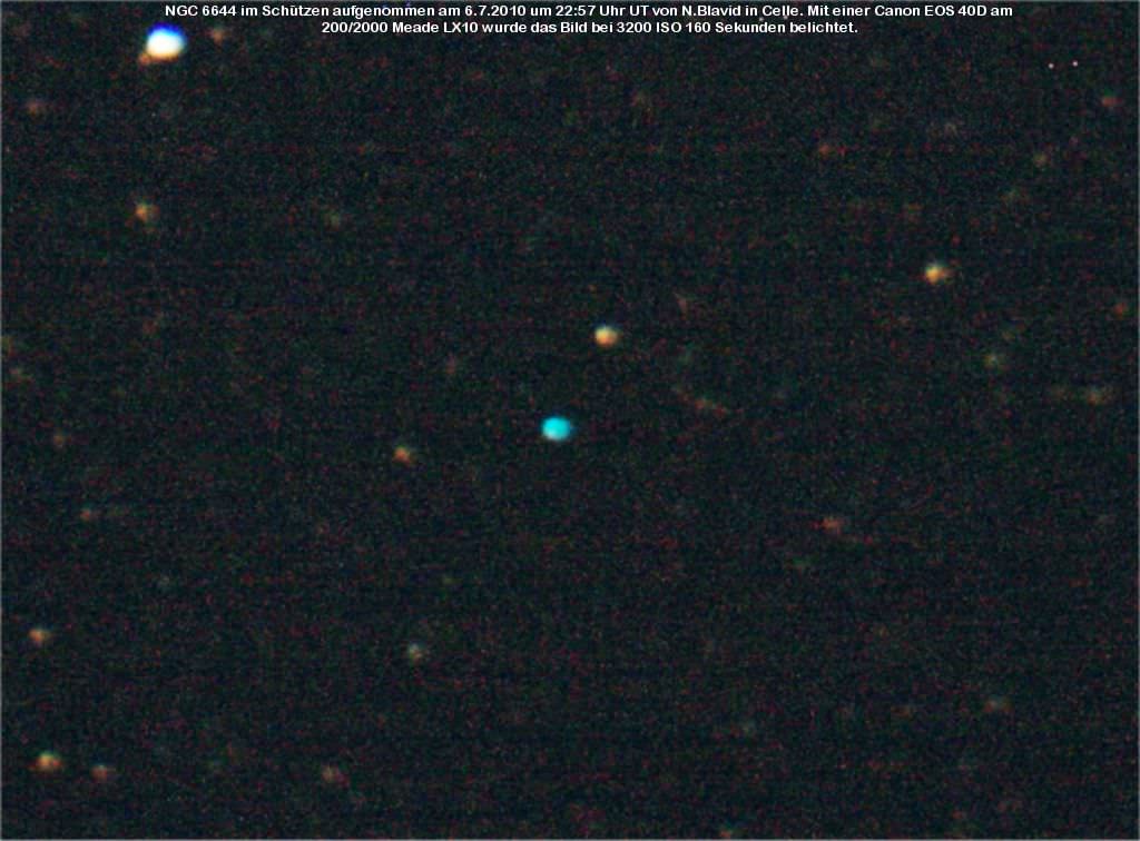 NGC 6644 ist ein planetarischer Nebel um einen 15,9 mag hellen Zentralstern. Entdeckt wurde das Objekt 1880 von Edward Pickering.
