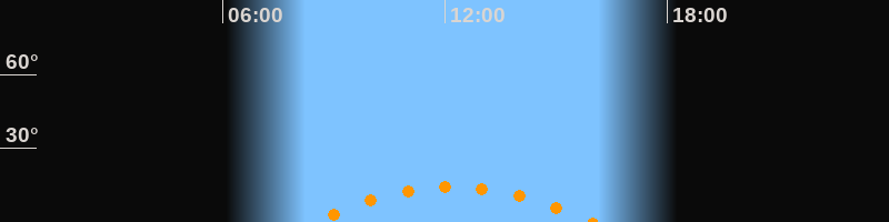 | Höchster Stand (Kulmination) | 12:13 Uhr (h = 14,4°) |