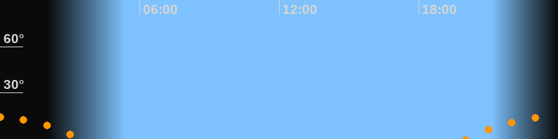 | Untergang | 03:33 Uhr im Südwesten (αAz = 229,3°) |