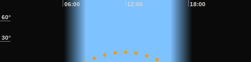 | Höchster Stand (Kulmination) | 11:50 Uhr (h = 14,4°) |