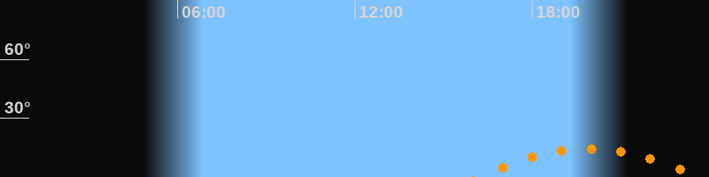 | Aufgang | 16:09 Uhr im Südosten (αAz = 130,7°) |