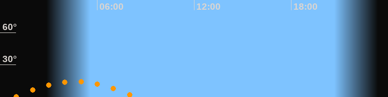 | Untergang | 08:22 Uhr im Südwesten (αAz = 229,3°) |